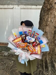 | alt text: buket bunga snack/sumber: asset pribadi Floverin | alt text: buket bunga coklat/sumber: asset pribadi Floverin |
